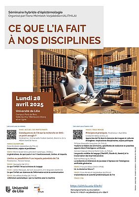 Résumé : Dans cette intervention, nous abordons les terrains, objets de recherche et les nouvelles technologies abordées en Science de l'information et de la communication en lien avec l'avènement de l'Intelligence artificielle générative. Nous présentons les façons dont les SIC se sont appropriées le sujet. Nous abordons notammrent les aspects langage, éthique, création et l'analyse des pratiques professionnelles. Nous présentons également les limites actuels des IAg, et nous présentons quelques perspectives en lien avec des travaux en cours dans ce domaine.