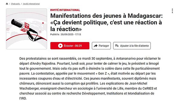 Manifestations des jeunes à Madagascar. RFI 30/09/2025